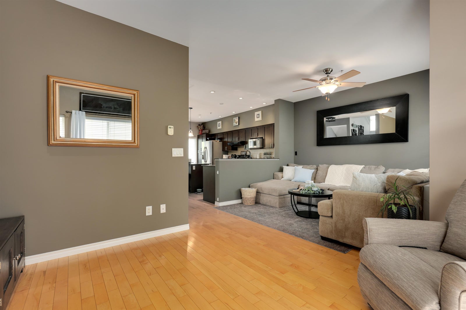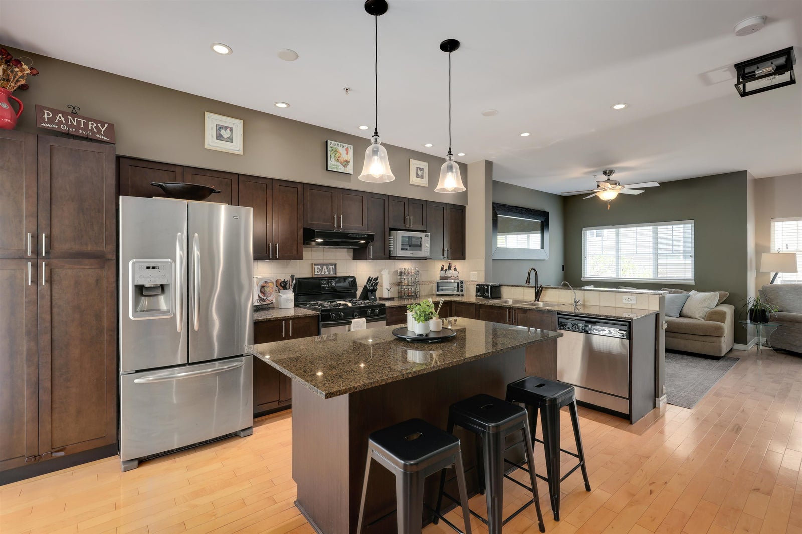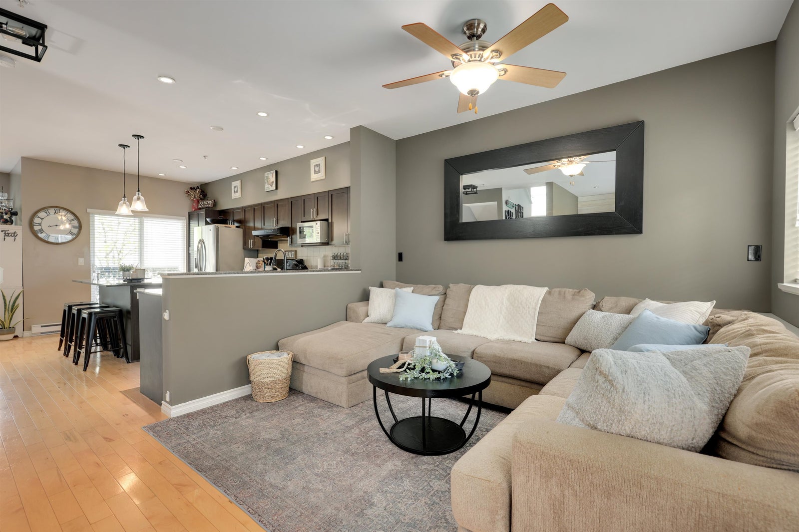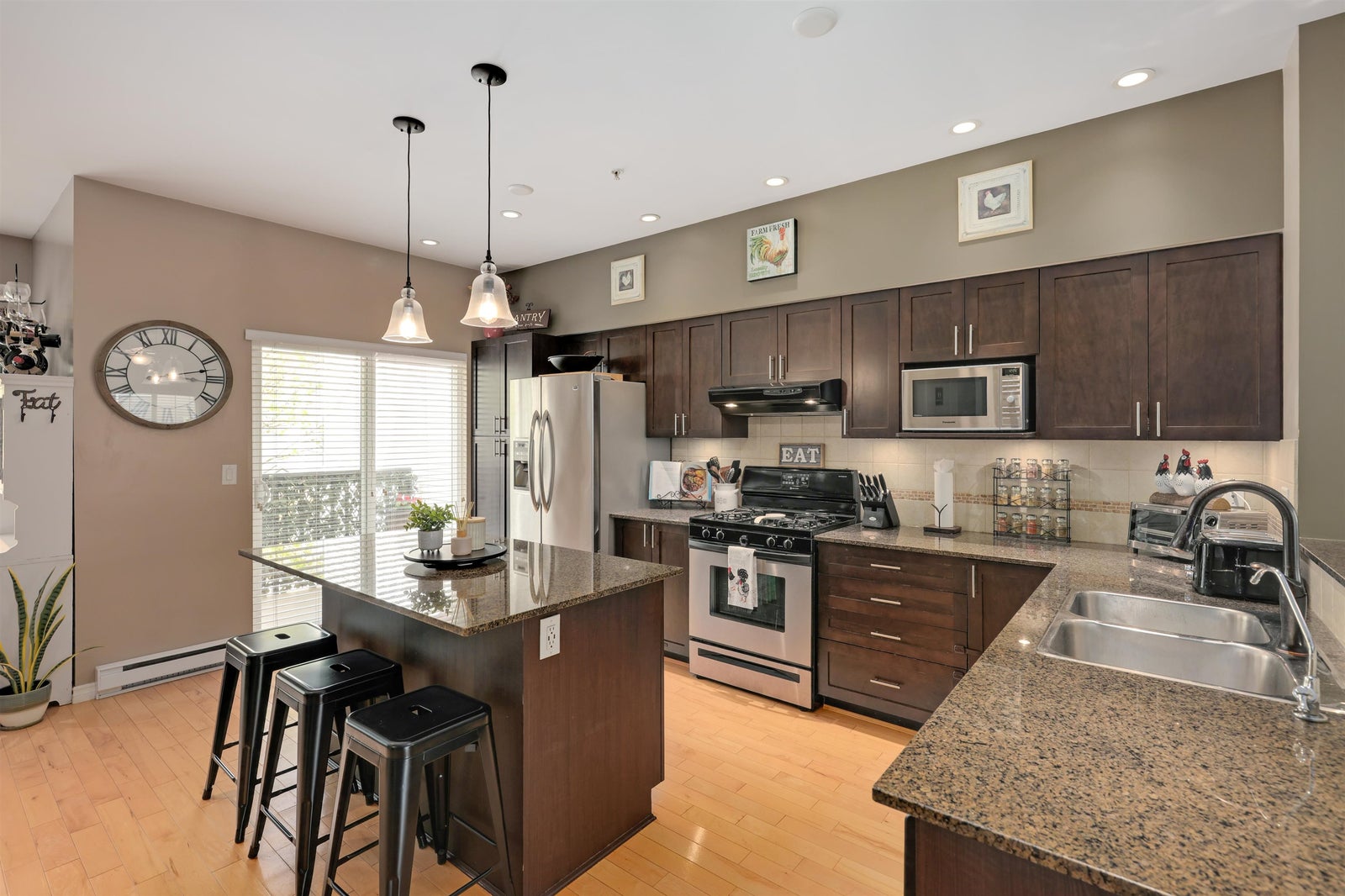 True end-unit townhouse in Walnut Grove offering over 1,700 sq. ft. across 3 levels, a highly functional layout, and an abundance of natural light throughout. This well-kept home has been extensively upgraded and features a beautiful kitchen and inviting living space. The main level offers impressive high ceilings, granite counters, a gas range, custom soft-close cabinetry, and hardwood flooring. Upstairs features 3 bedrooms and 2 bathrooms, while the lower level provides a versatile flex space or optional 4th bedroom with direct access to the sun-filled turf yard. A rare oversized 2-car garage plus 2 full-size parking spots outside the door adds exceptional value. James Kennedy catchment. Open House Sunday, April 26 2-4 PM.