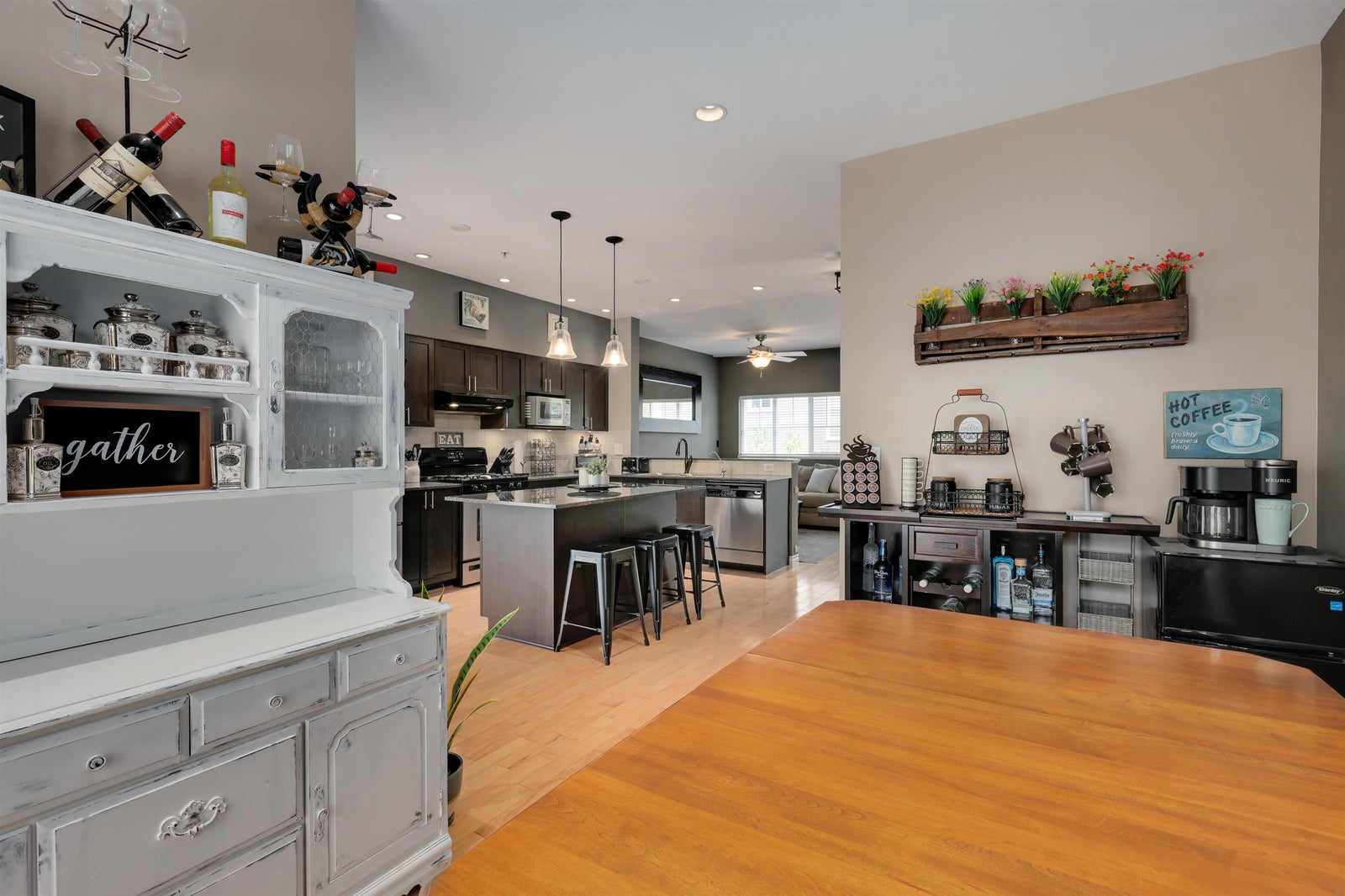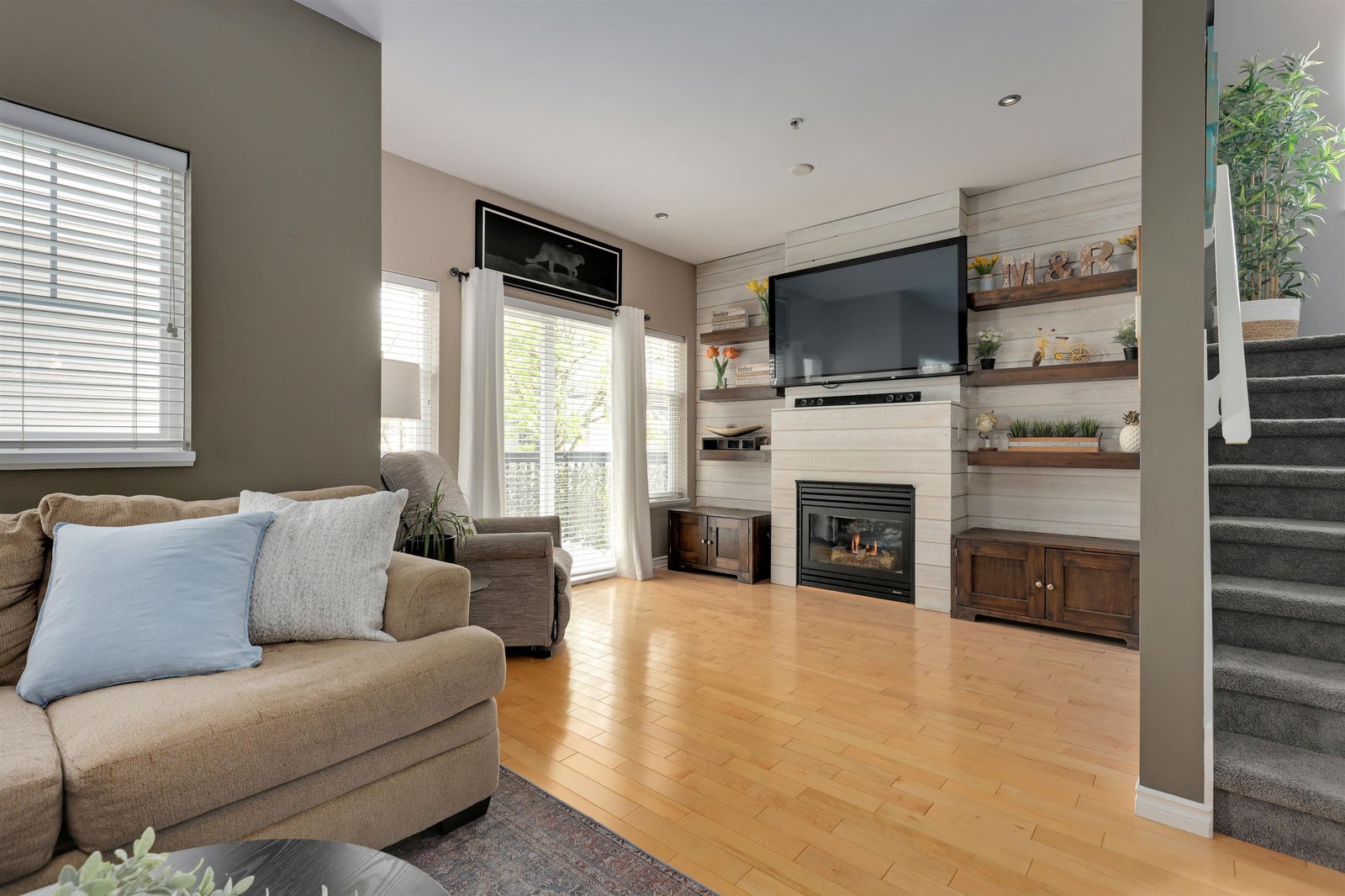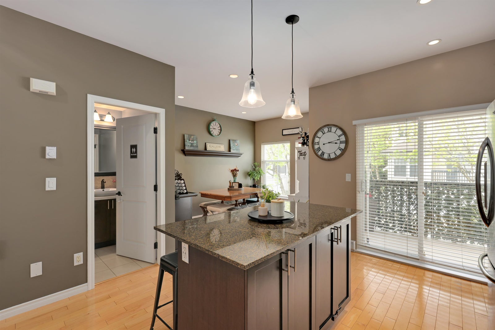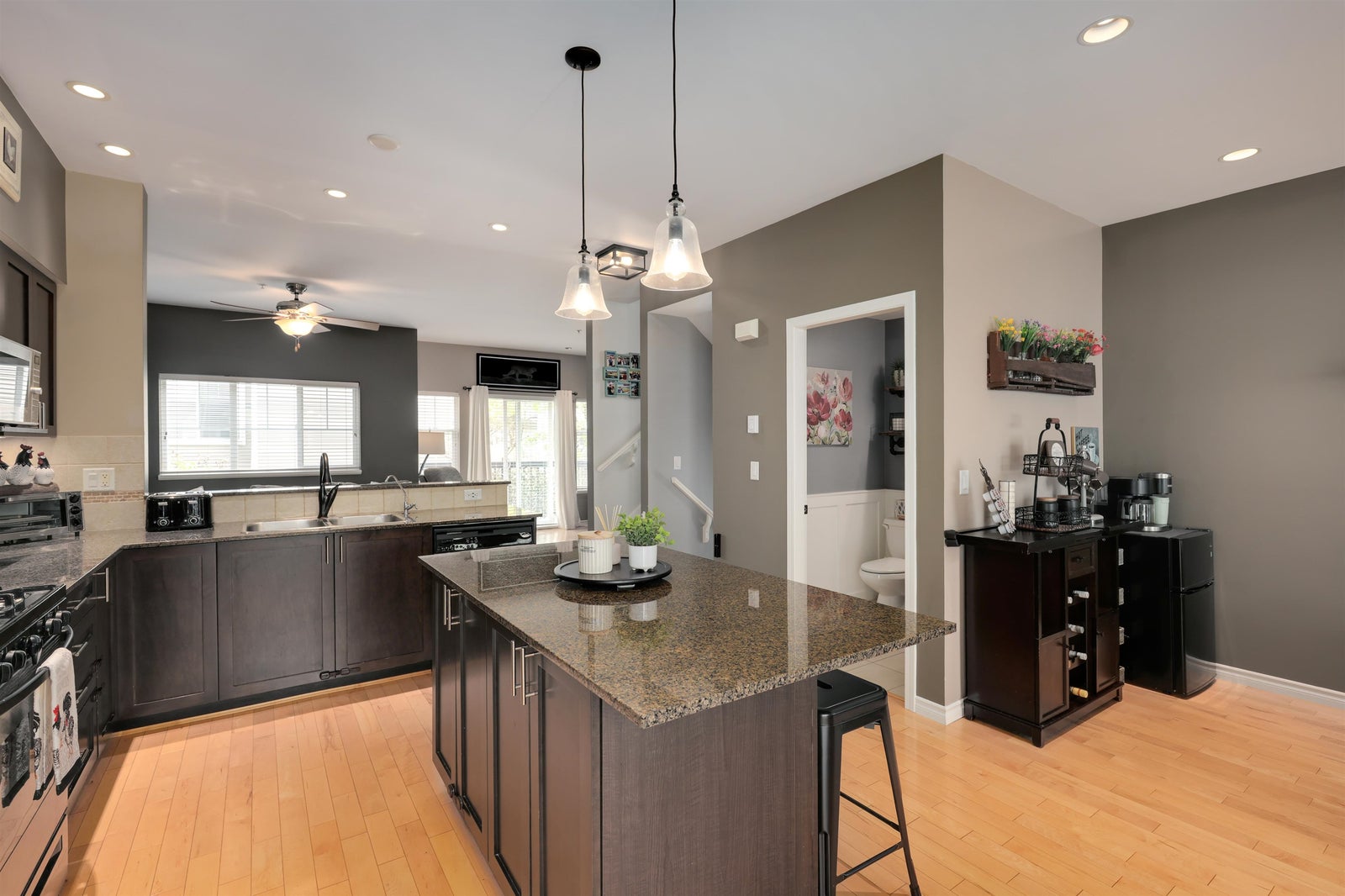 True end-unit townhouse in Walnut Grove offering over 1,700 sq. ft. across 3 levels, a highly functional layout, and an abundance of natural light throughout. This well-kept home has been extensively upgraded and features a beautiful kitchen and inviting living space. The main level offers impressive high ceilings, granite counters, a gas range, custom soft-close cabinetry, and hardwood flooring. Upstairs features 3 bedrooms and 2 bathrooms, while the lower level provides a versatile flex space or optional 4th bedroom with direct access to the sun-filled turf yard. A rare oversized 2-car garage plus 2 full-size parking spots outside the door adds exceptional value. James Kennedy catchment. Open House Sunday, April 26 2-4 PM.